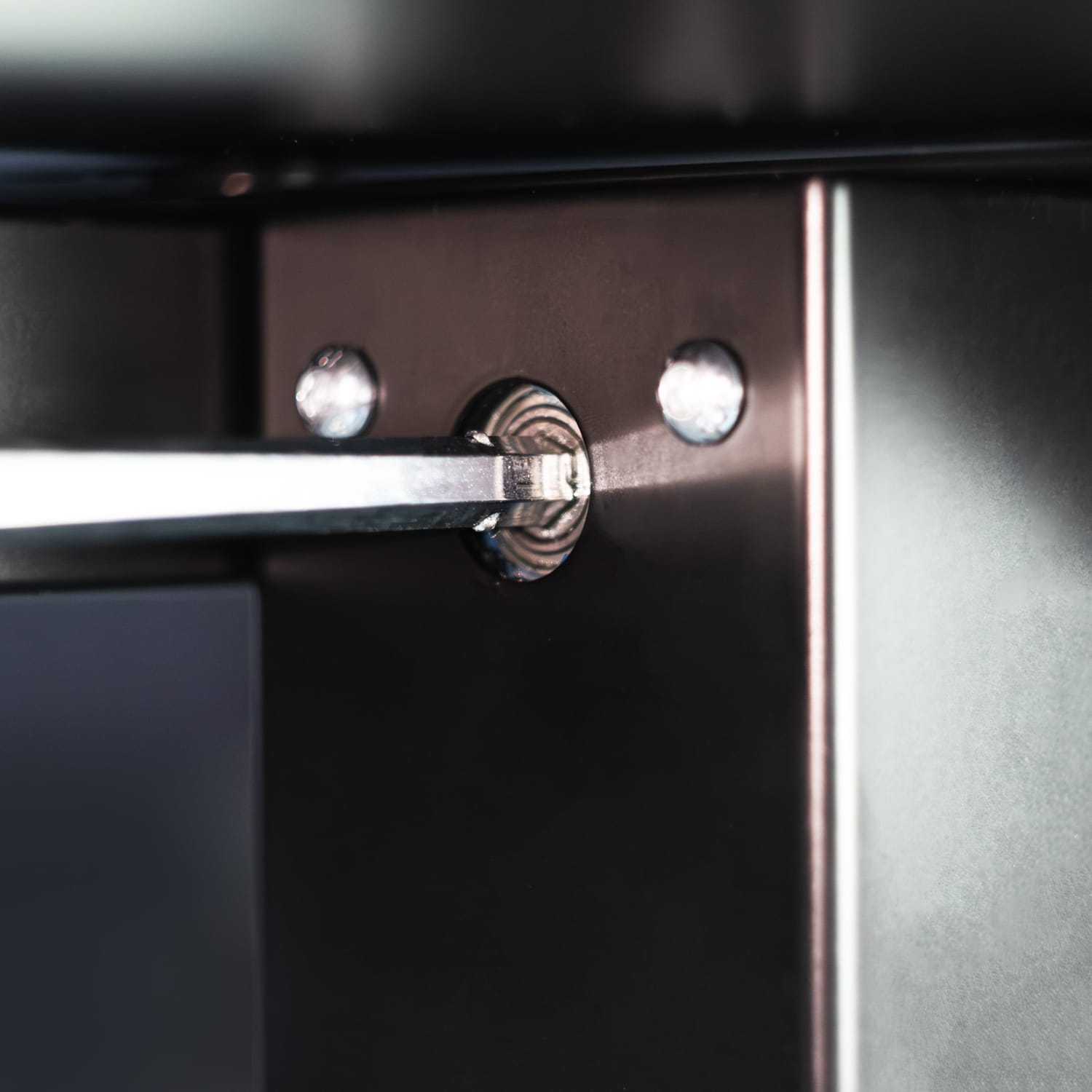 Tādā veidā mēs rūpējamies par jūsu piederumiem. Paskatieties zem darba virsmas – tur, diskrētā paplātē, novietojiet strāvas sloksni.